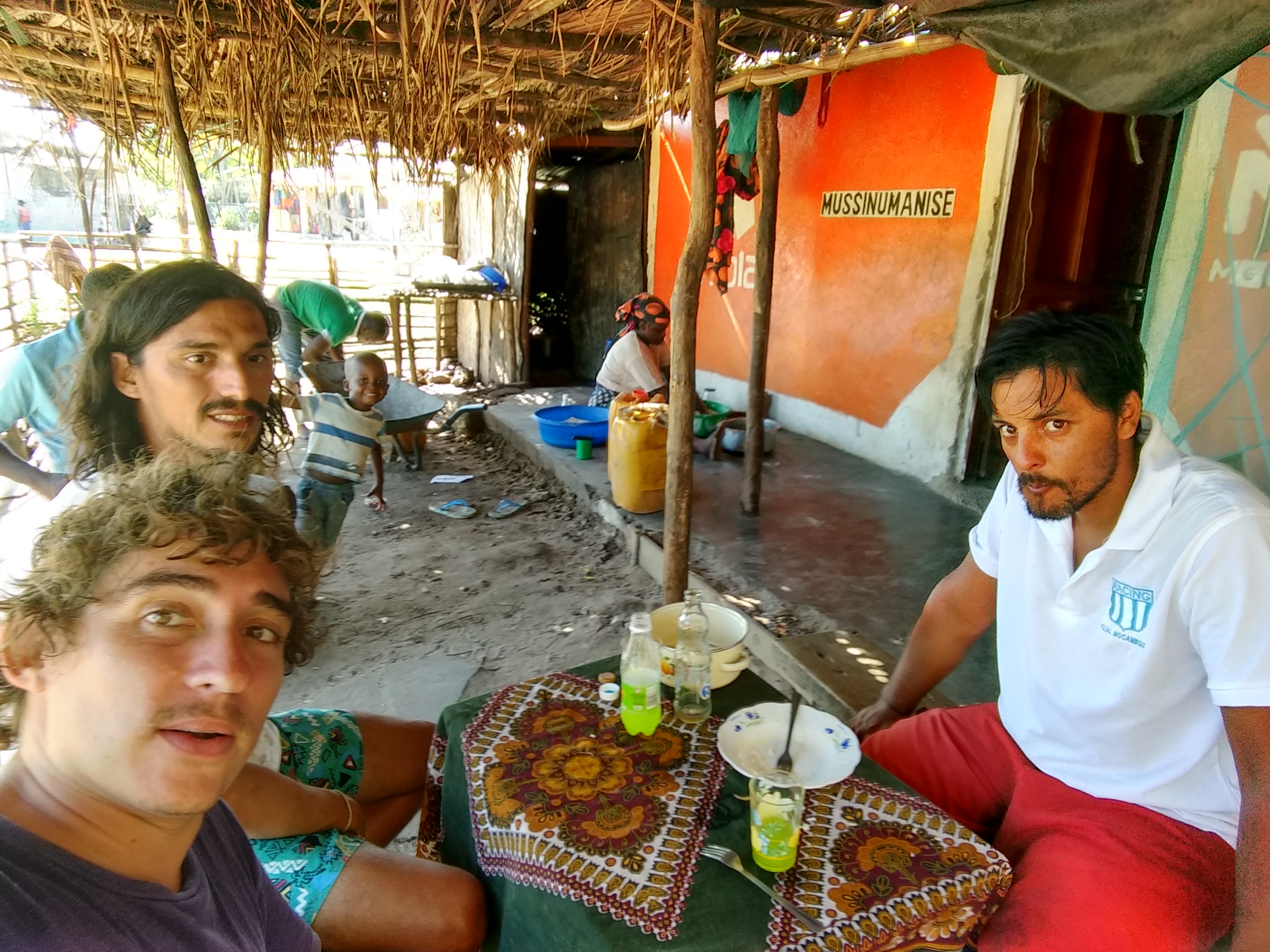 🚤Al otro día el paseo. Por las dudas preguntamos antes quien paga, ya no tenemos plata. El tour está incluido, era todo incluido menos las comidas al parecer. Barco de vuelta con la pareja reconciliada, abrazos, besos 😘😍 y nosotros, los hijos, rompiendo las bolas. Un banco de arena impresionante que emerge del mar y arma playas perfectas cuando baja la marea y luego desaparece, ningún delfín. Volvemos y está vez nos vamos a almorzar a cualquier lado menos al hotel. 👻Anda cerca el fantasma de la noche anterior 👻. Unos pibes nos llevan al mercado local, que no es más que 3 lojas que venden algunas cosas. Entramos a la galería de una casa que tiene una sola mesa. Por 70 meticales (16p Arg) hay pescado con salsa picante y arroz blanco que cocinó una señora que ahora amasa pan en una palangana en el piso, mientras su hijo nos mira sorprendido. Creemos que está 3ra o 4ta en la lista de mejores chefs del país. Comemos y nos preparamos para volver que a las 16pm sale el barco con nuestros anfitriones que ya son una pareja feliz nuevamente. O no.