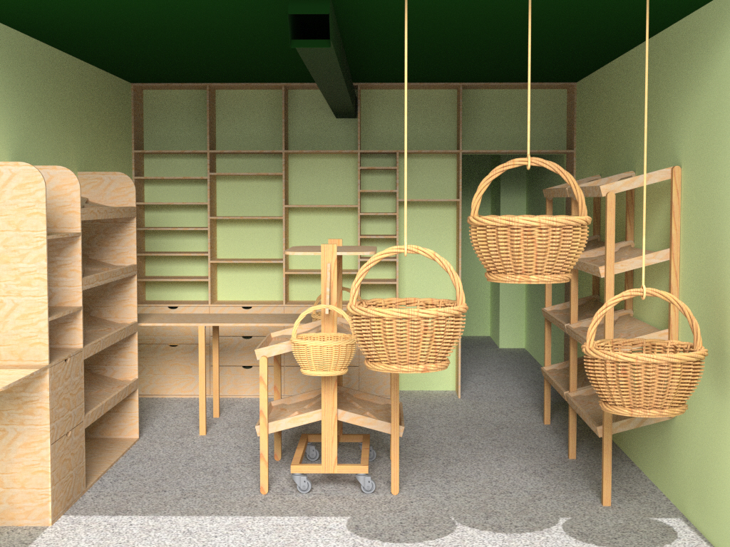 Tienda y espacio de trabajo de los agricultores agroecológicos del este de Puerto Rico. Combina la necesidad de contar con un espacio físico para preparar, empacar y vender productos agrícolas y sus derivados de valor agregado al público en general, con la necesidad de reunirse, realizar talleres y actividades. Dado que no se contaba con un local comercial de gran tamaño, se pensó en un espacio de verdulería tradicional, con muebles móviles o rebatibles, para que en el mismo espacio comercial pudieran tener reuniones y talleres con pocos movimientos.